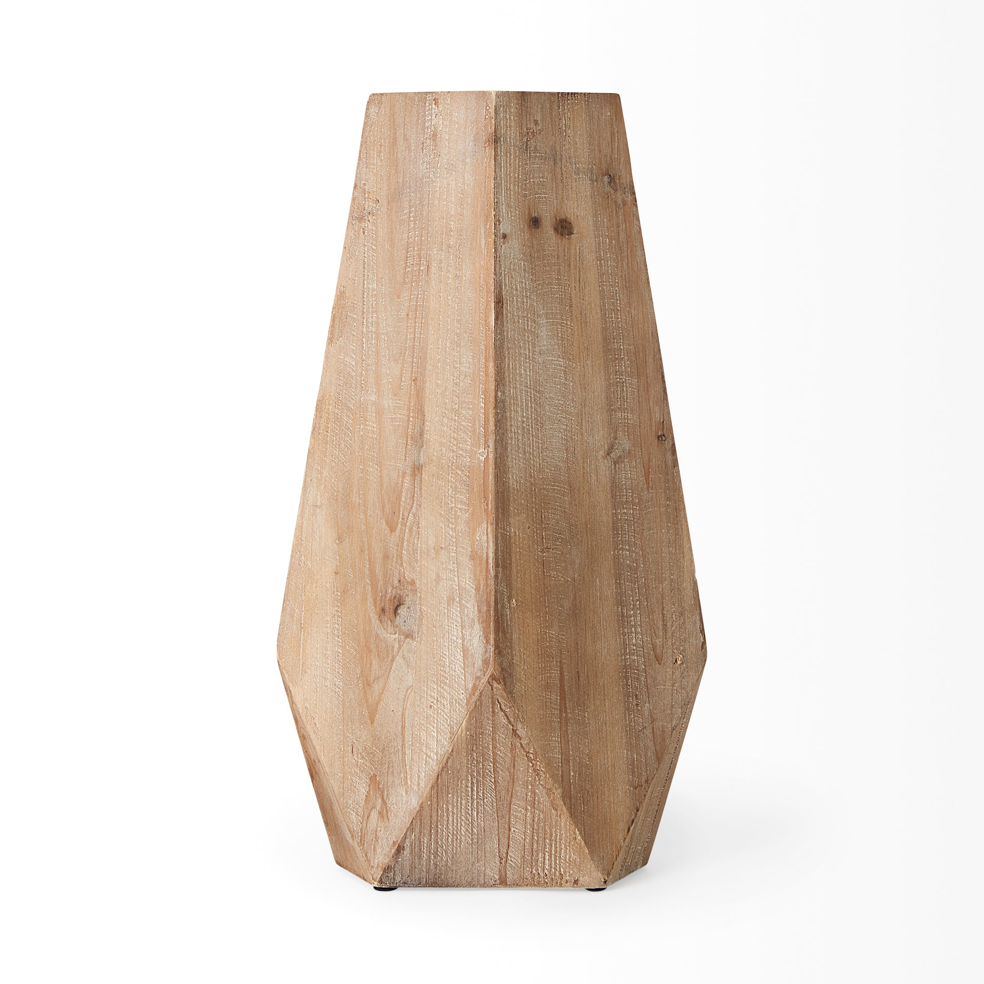 The Allen, skillfully crafted from wood, is a beautiful and unique addition to your space that looks great by itself or when paired with other vases that compliment it