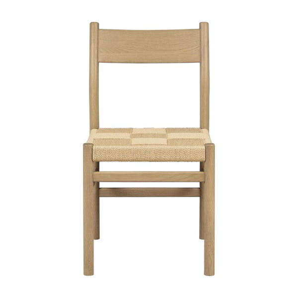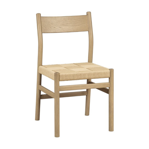The Asher Dining Chair is inspired by minimalist Danish design, featuring a solid American oak frame with clean, straight lines. The woven Danish cord seat adds texture and comfort, creating a timeless piece that enhances any dining space with its understated elegance and natural materials.