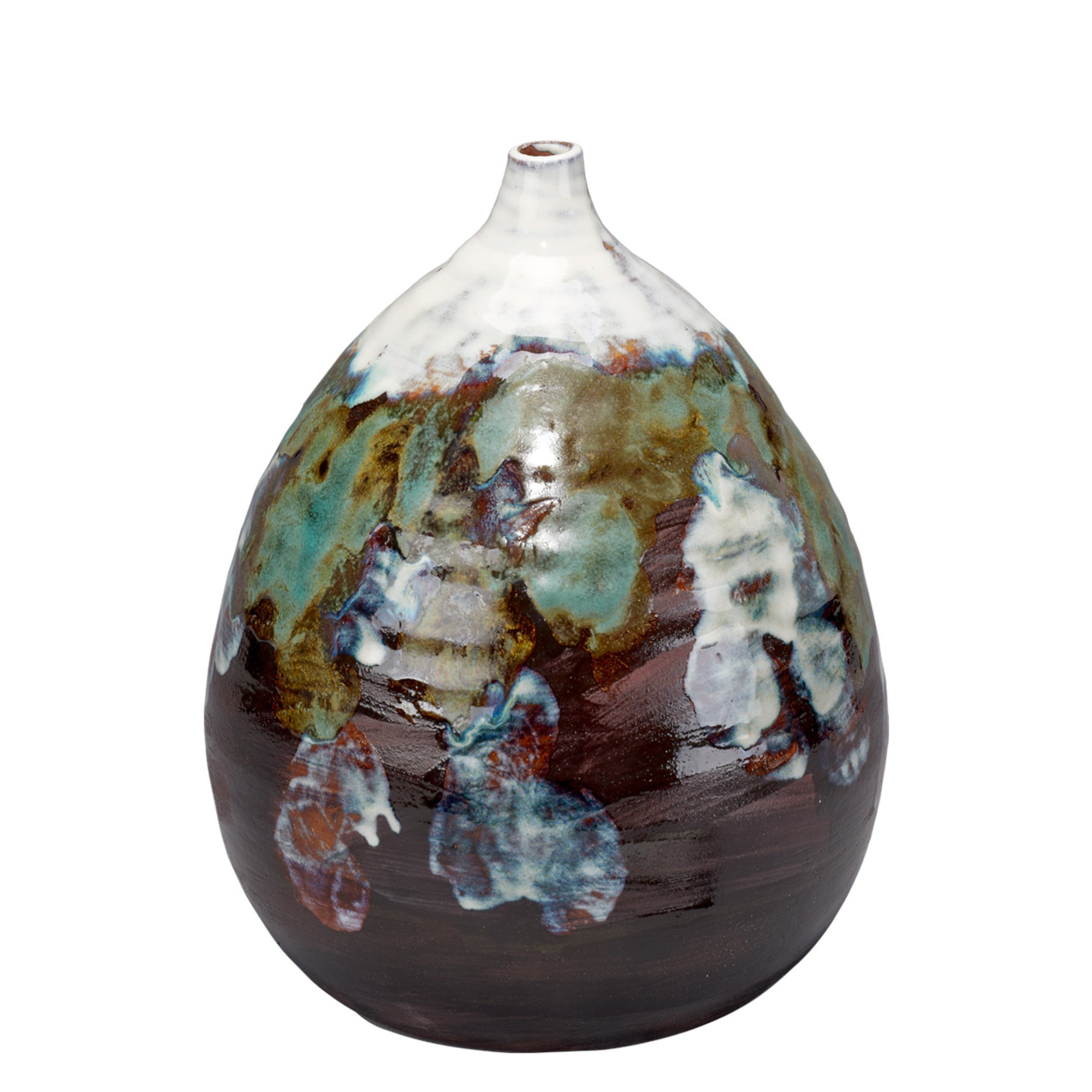 Expertly sculpted by hand, this ceramic vase is adorned with thick, rich layers of hand-applied reactive glaze. Inspired by the earth, its organic colors encompass every shade of sand, stone, sea and sky. Each vase is a true one-of-a-kind work of art, showcasing its beauty whether displayed alone or filled with your preferred dry filler like feathers or reeds. Each piece is a uniquely artful addition to your tablescape or mantel.
