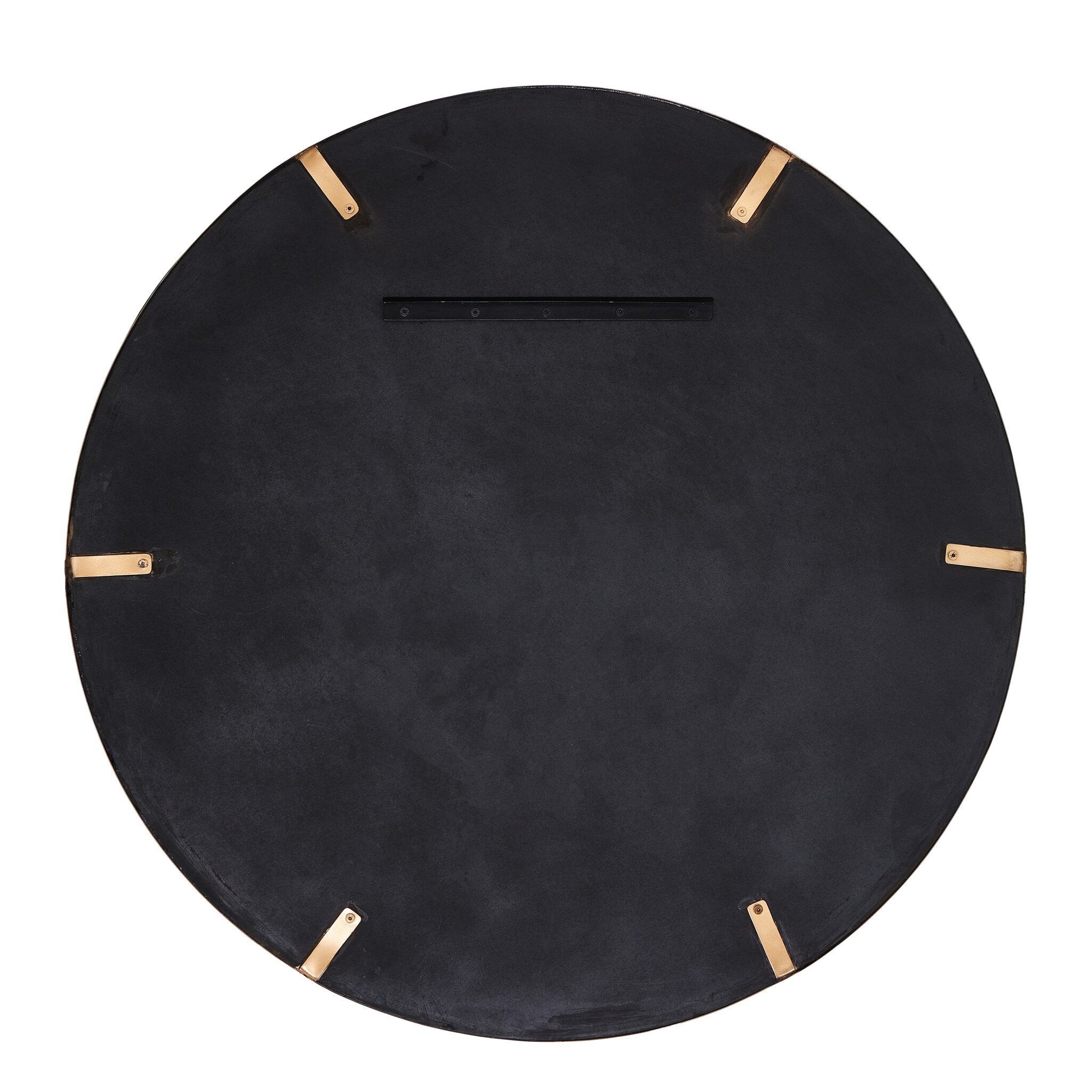 A slim frame in vintage brass and black finished iron cradles this oversized mirror's convex curve. Bold yet refined, it amplifies space and light as a captivating focal point.