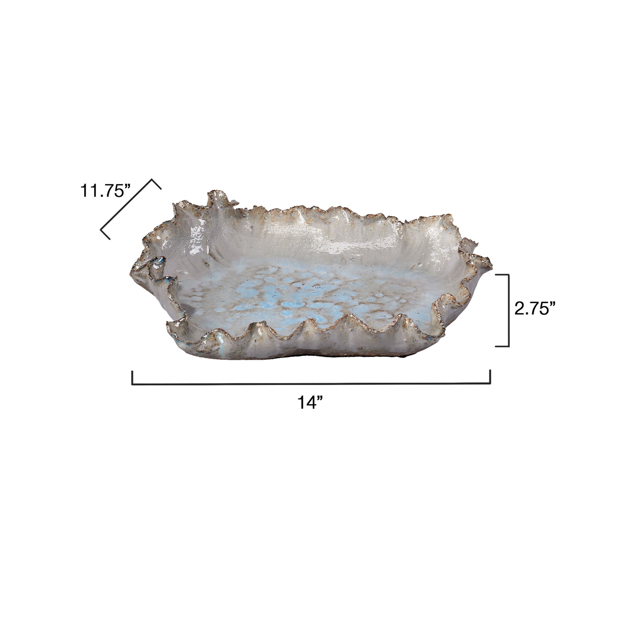 Inspired by the magnificence and mystery of the ocean's countless creatures, these decidedly organic trays evoke the awe we feel for the creatures themselves. Handcrafted of the finest ceramic and finished in a hand-applied gray reactive glaze, no two will be identical.