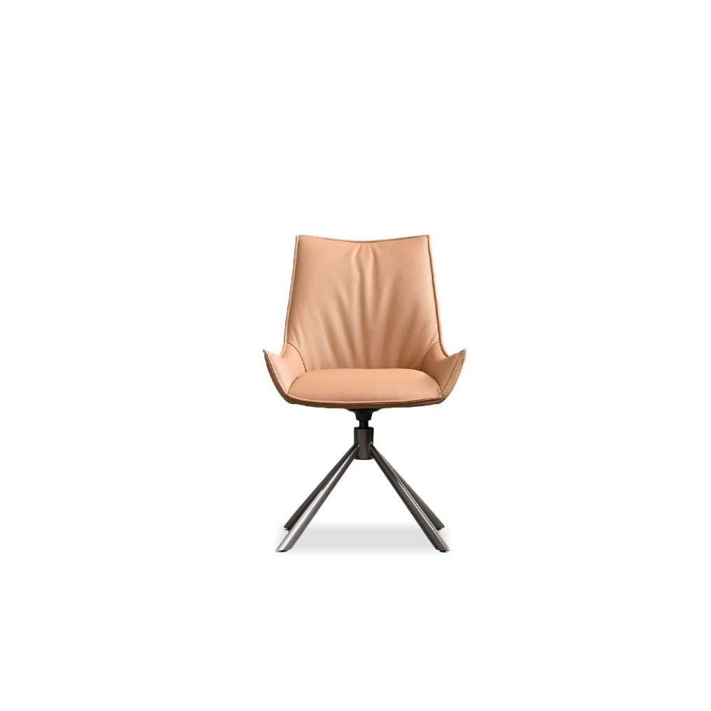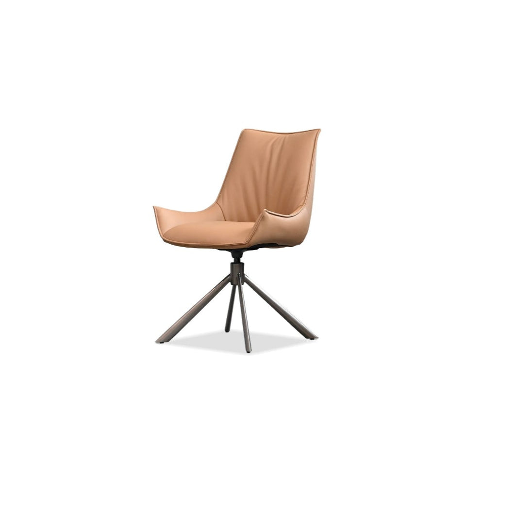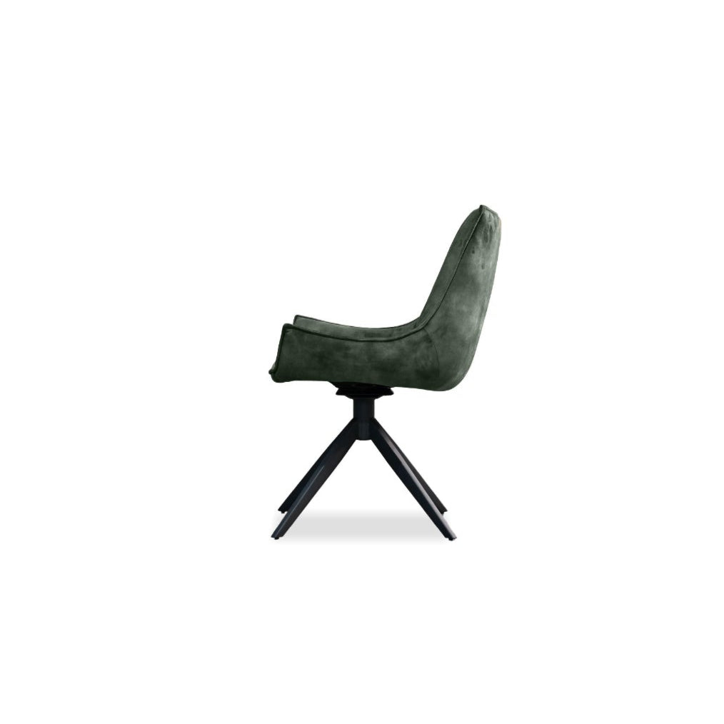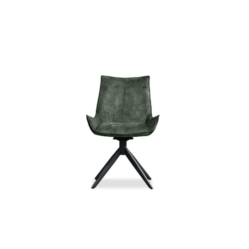 The Giulia dining chair is upholstered in four colour options, two fabrics, anthracite or forest green velvet with black legs and two leather options, an irish rum with antique bronze legs or black with black legs. This stylish chair features a 360-degree swivel base.