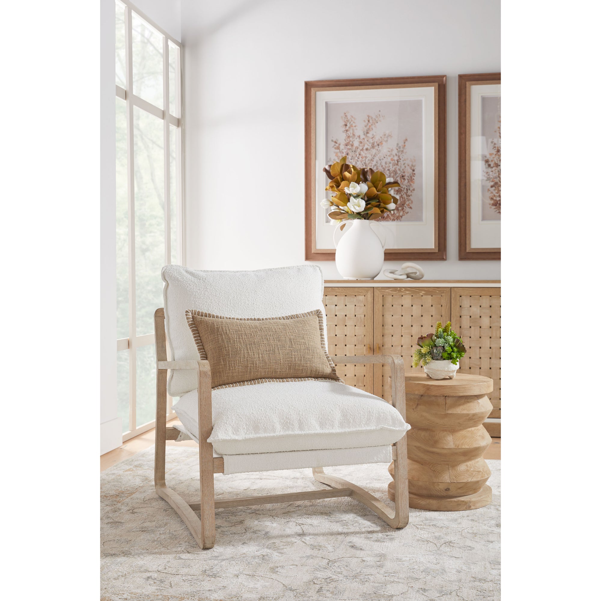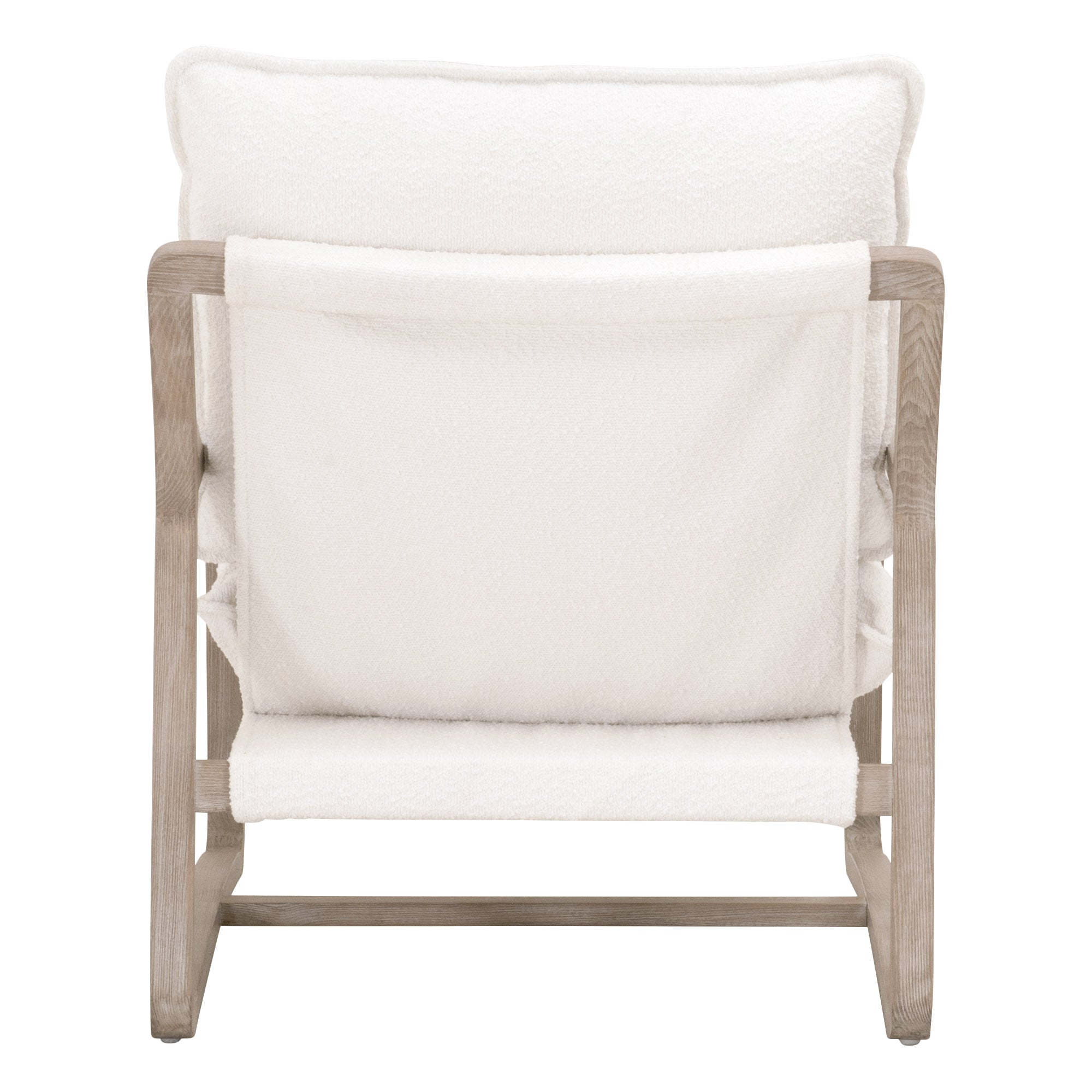 With its slimly designed base, unique fabric, and neutral colors, this Hamlin Club Chair by Essentials For Living will be a statement piece in any room. It measures 29.25" wide, 37" deep, and 36" high, with a seat height of 19". The contemporary sled base design is made of solid oak with a natural gray finish. This highlights the gorgeous LiveSmart white boucle fabric that makes up the sling support and cushions. The cushions are filled with polyester and down blend and are both removable and reversible. The fabric is also stain-resistant, making cleaning easy. Paired with other transitional pieces, this club chair will mesh well with many interior designs and furniture styles.