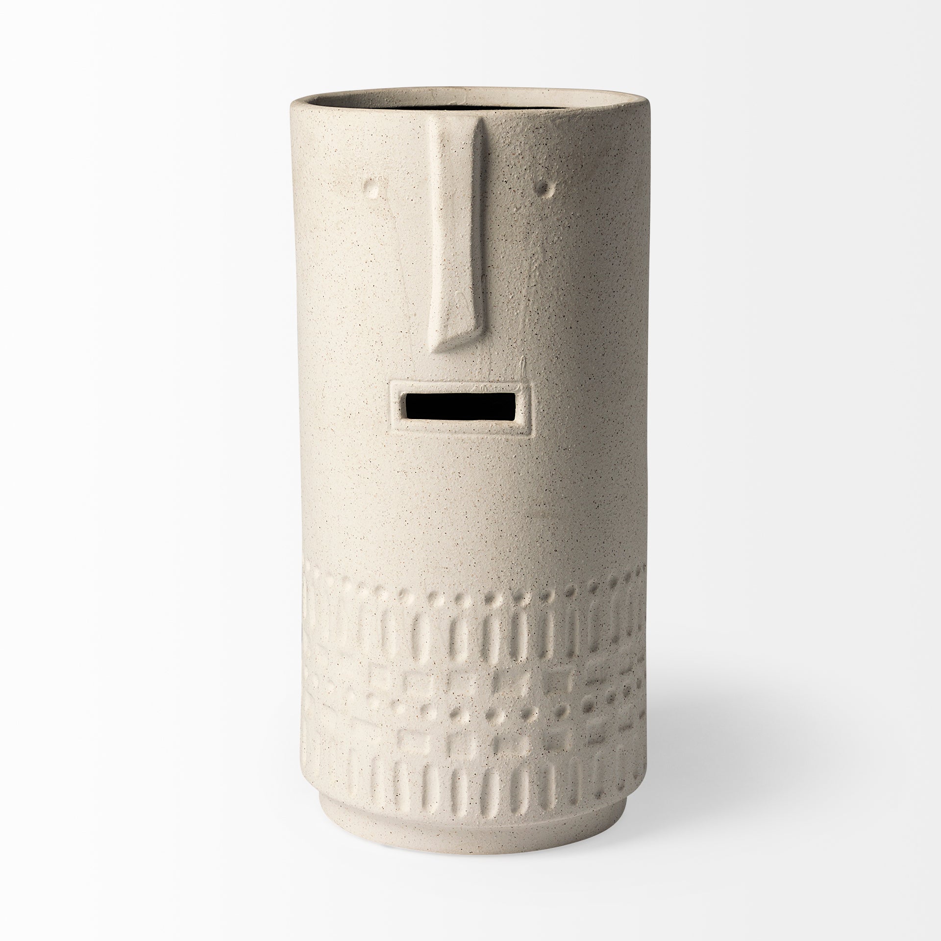 The Jacob is finished in a spectacular white tone with a pattern that resembles a smiling face, making it a fun vase that is sure to turn heads