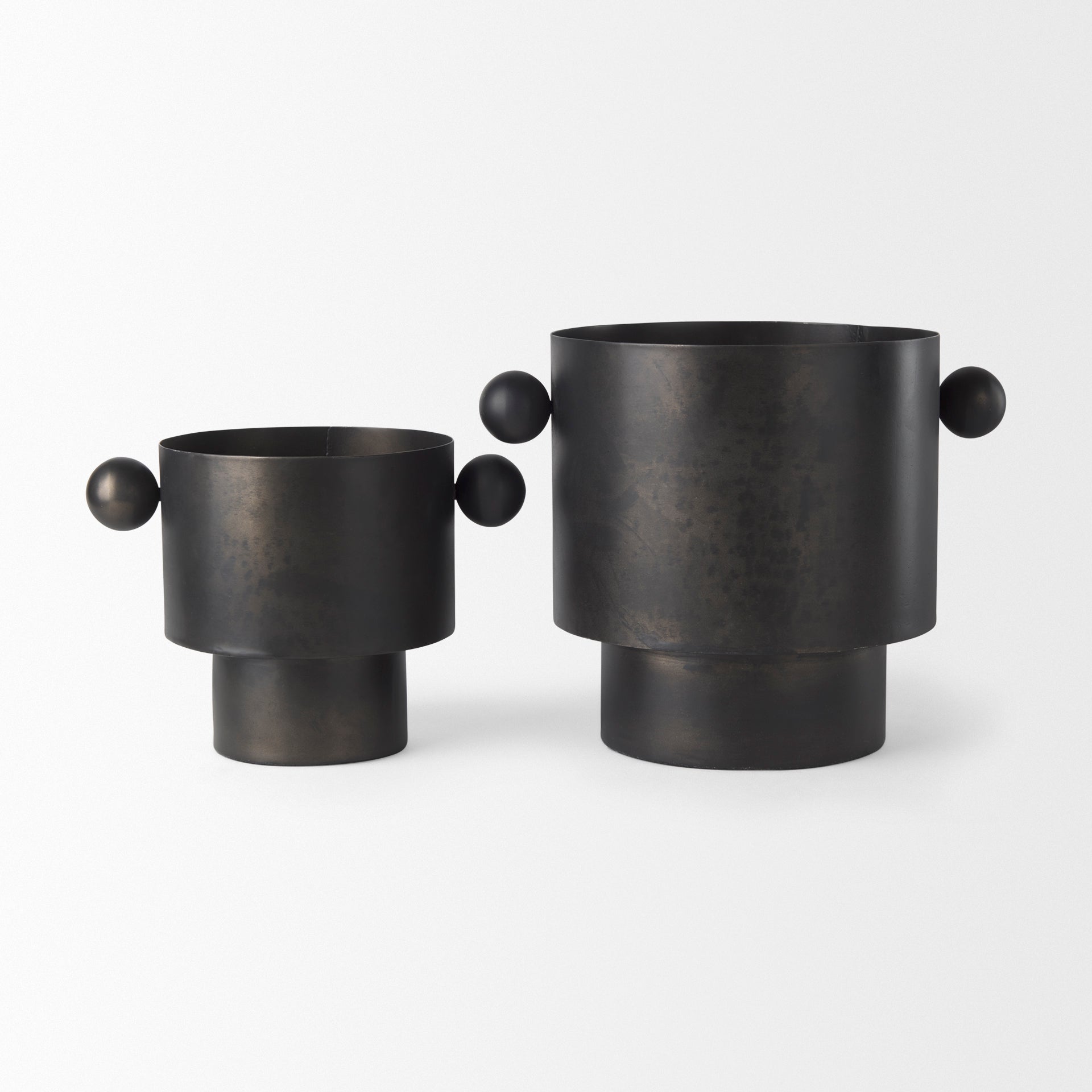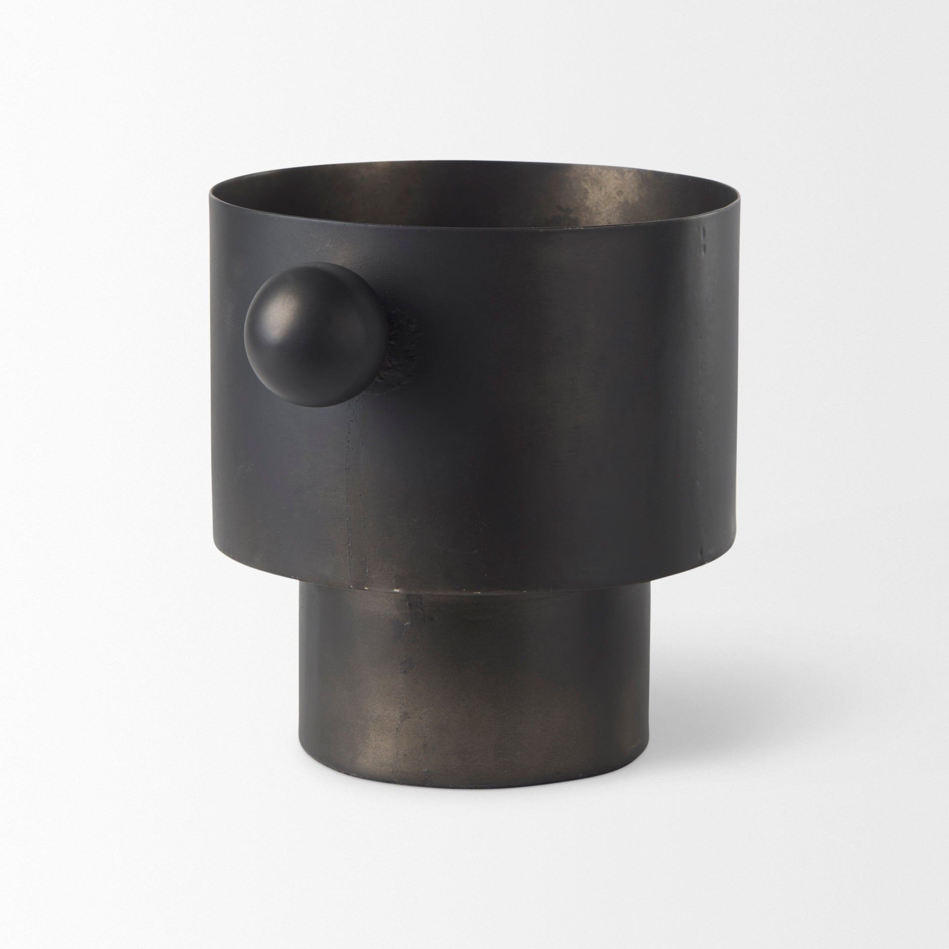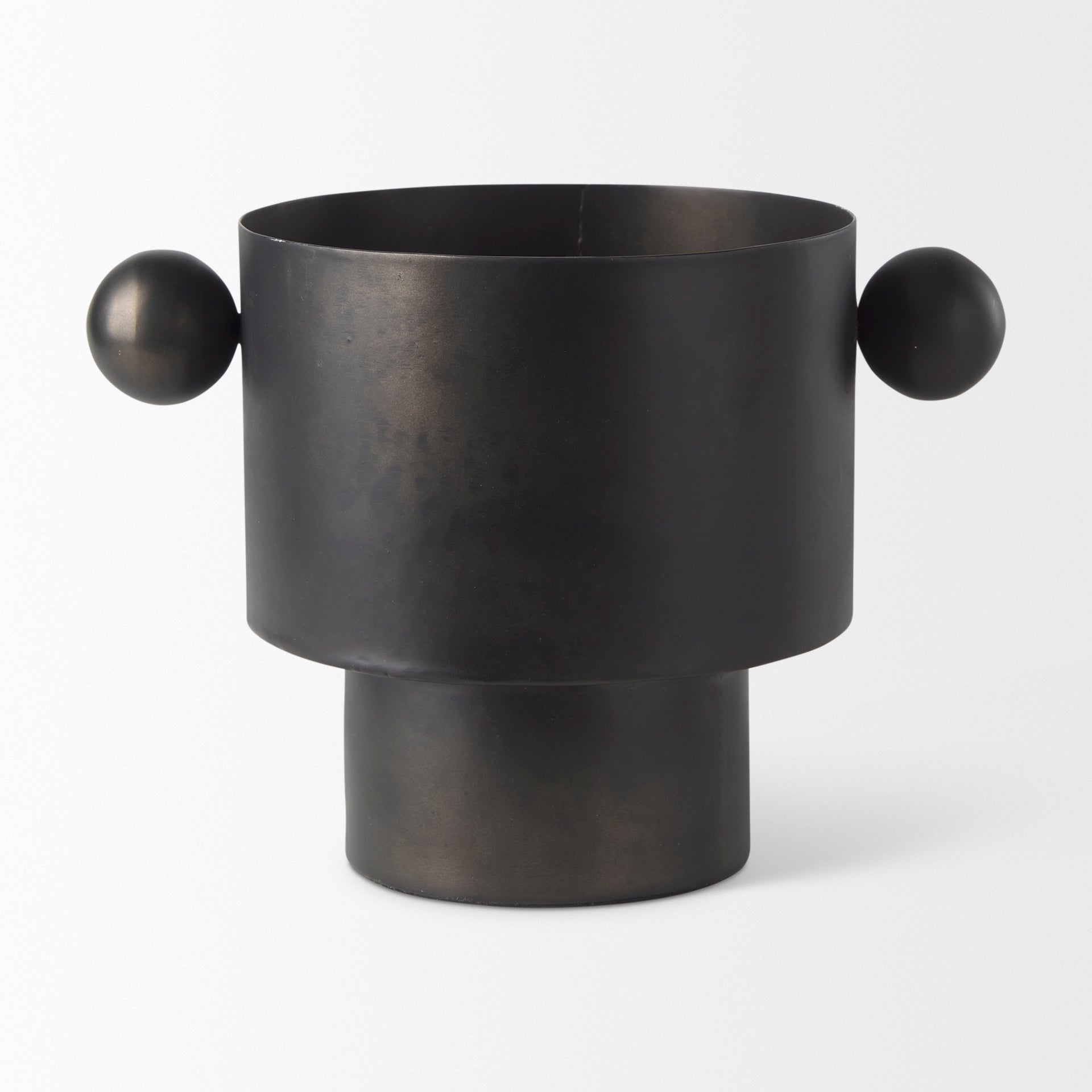 Fall in love with the spherical handles, geometric design and modern quirkiness of the Juno Flower Vase. This cast-iron vase is eye-catching with its burnished blackfinish, perfect as a standalone piece or grouped with others in the Juno collection.