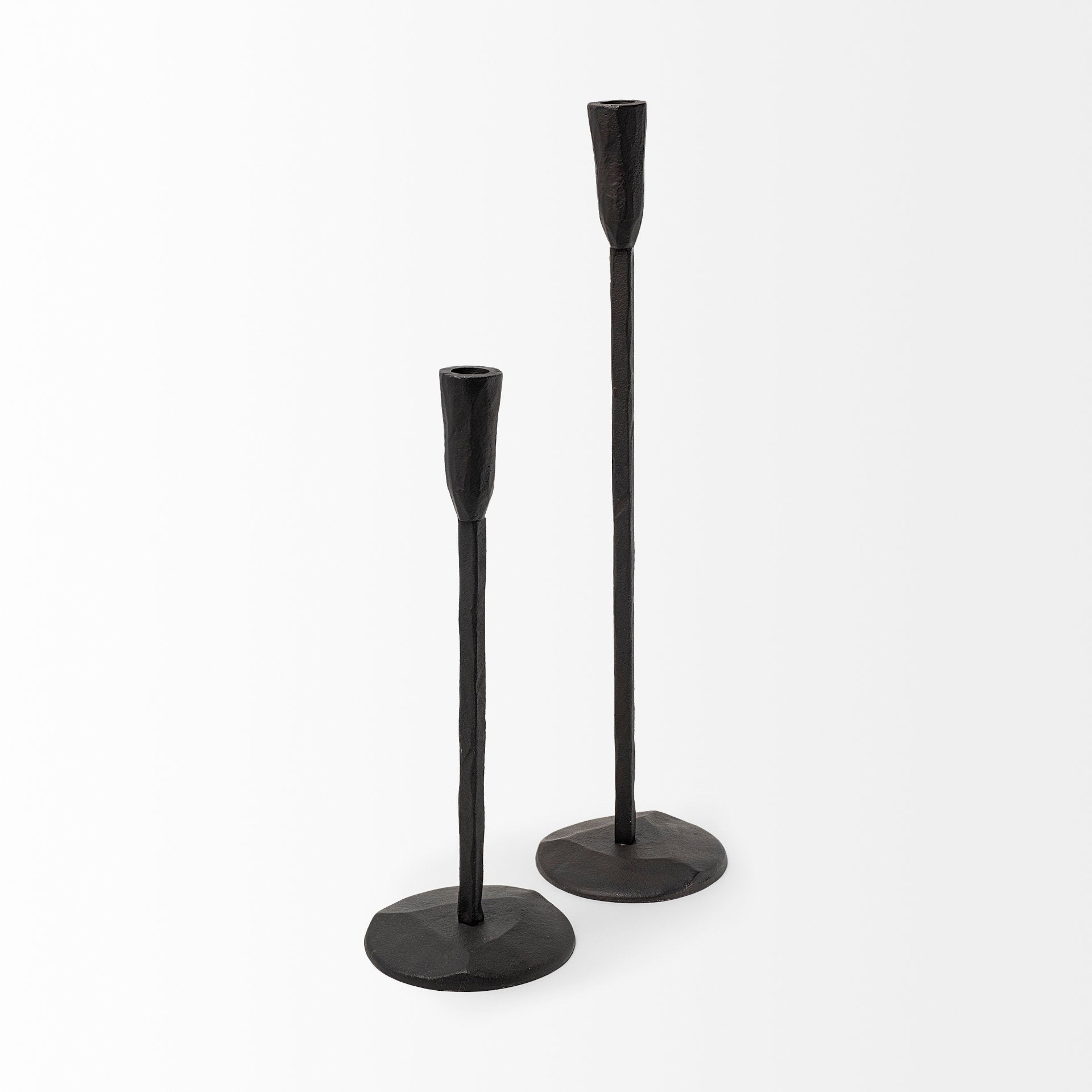 Designed to have an industrial yet elegant feel, the Levit candle holder is constructed of sturdy metal that is built to stand the test of time. The small Levit candle holder can be paired with the large Levit candle holder, for a look that is cohesive and uniform. The Levit candle holder is a perfect mix of industrial metal material and slim, sleek, elegant design style. They make the perfect addition to any table top.