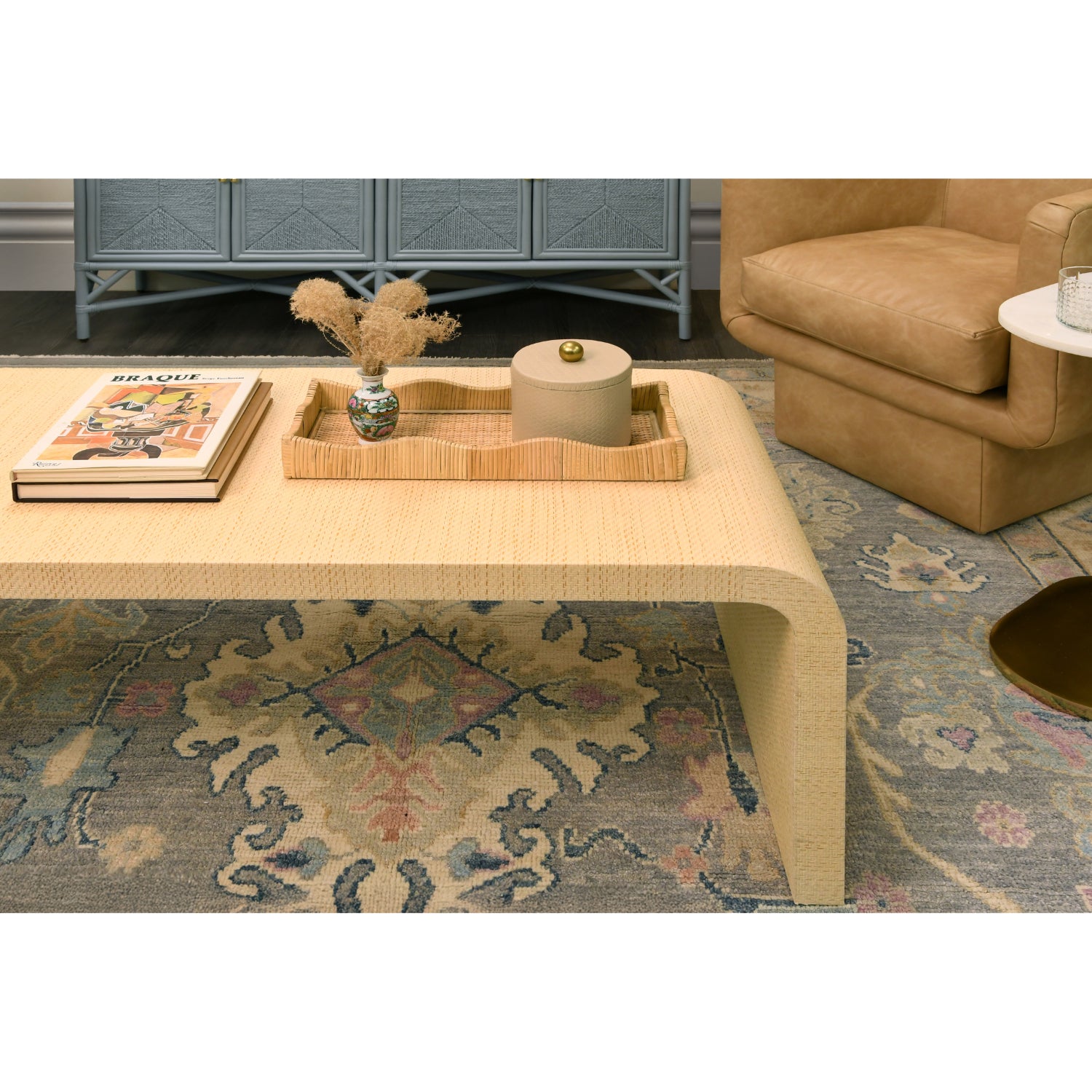 The Light Burlwood Waterfall Coffee Table showcases a waterfall edge design with a rich burlwood finish. This luxurious piece acts as both a functional table and a statement of craftsmanship. Ideal for sophisticated living rooms, it offers ample surface space and durability.