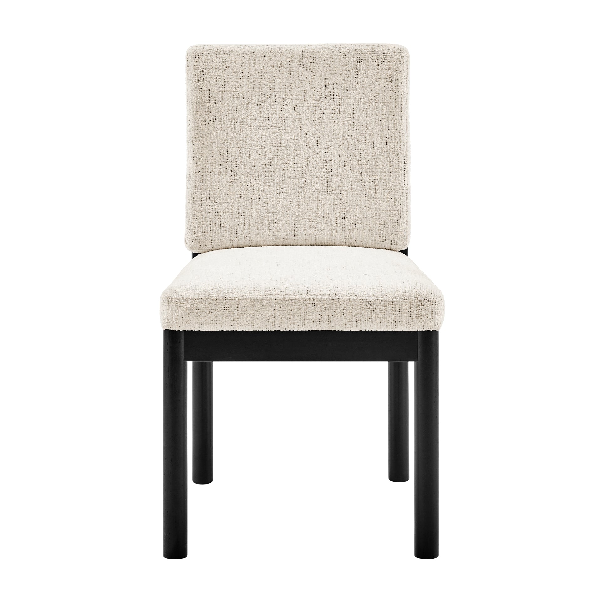 The Melvin chair highlights simplicity and modernity. Featuring a soft monochrome tone with a basic square-shaped backrest and seat, its black tubular wooden frame adds a contemporary touch to the design.