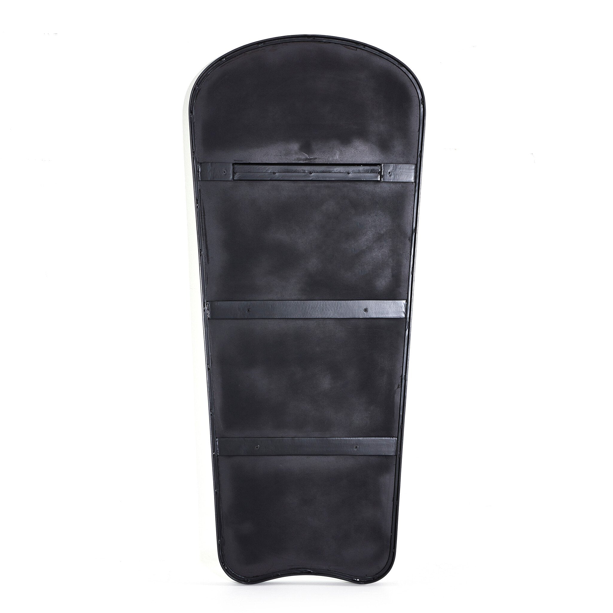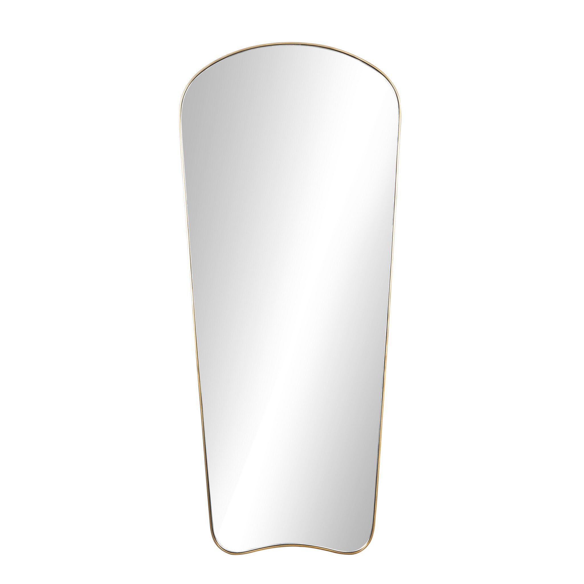 A long, swooped silhouette of brass-finished aluminum shapes rounded corners while maintaining a sleek overall look.