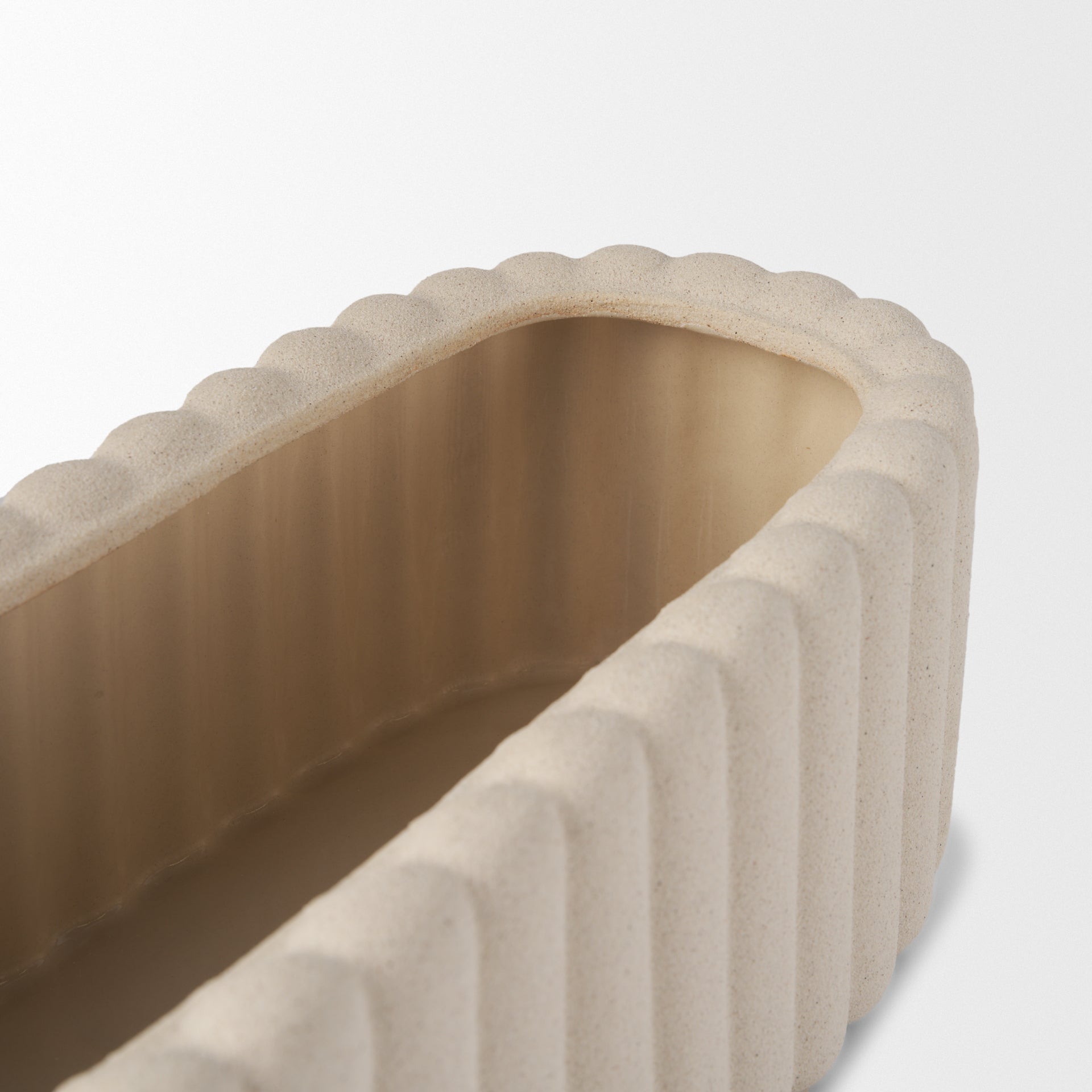 Its charming fluted design and sandy textured exterior lend a warm and inviting aesthetic