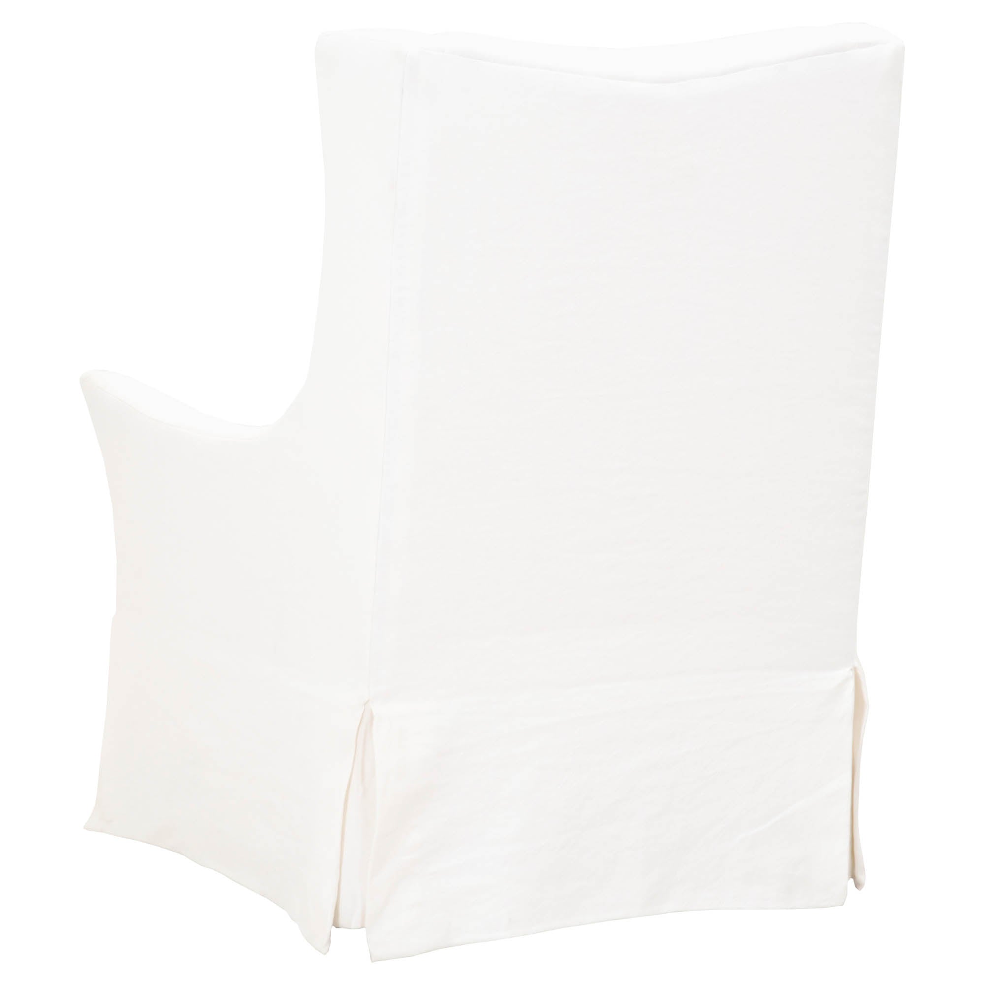 The Otto Swivel Club Chair by Essentials For Living will fit in well with many transitional designs. It is upholstered in cream crepe fabric with a skirted design. Uniquely curved arms add a modern flare to this otherwise traditional club chair as well. With the seat cushion made of D35 foam, this chair is extremely comfortable to curl up and read a book or watch television on. It features a reversible seat cushion, as well as ties to prevent the cushion from moving. Constructed with 3.8" coil sinuous springs, this chair is meant for durability and dependability. It includes a square throw pillow filled with down feathers and a 360-degree swivel base. Measuring 34.25" wide, 34.5" deep, and 45" high, with an 18.5" seat height, this chair will make ideal accent seating.