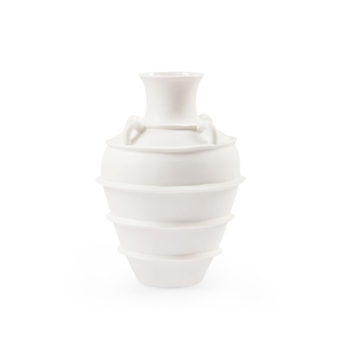 The blue and white cityscape of Santorini comes to mind with the Phaedra vase. It is a Greek-inspired piece with rustic energy yet a sophisticated finish of Midnight Blue glazed porcelain. The Phaedra is shaped with intentionally uneven ridges and handles to emphasize its hand craftmanship and impart a grounded feel. The Phaedra Vase can stand alone as dEcor or could be filled with long branches or stems at an entryway. This is an exceptional piece for a beach house, a traditional home or a glamorous veranda.