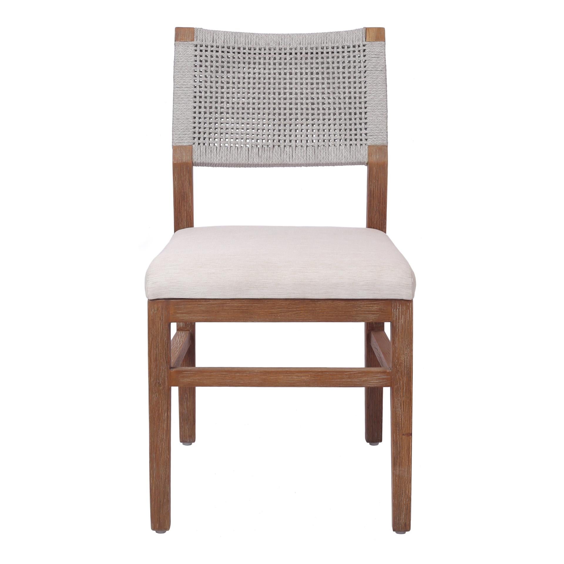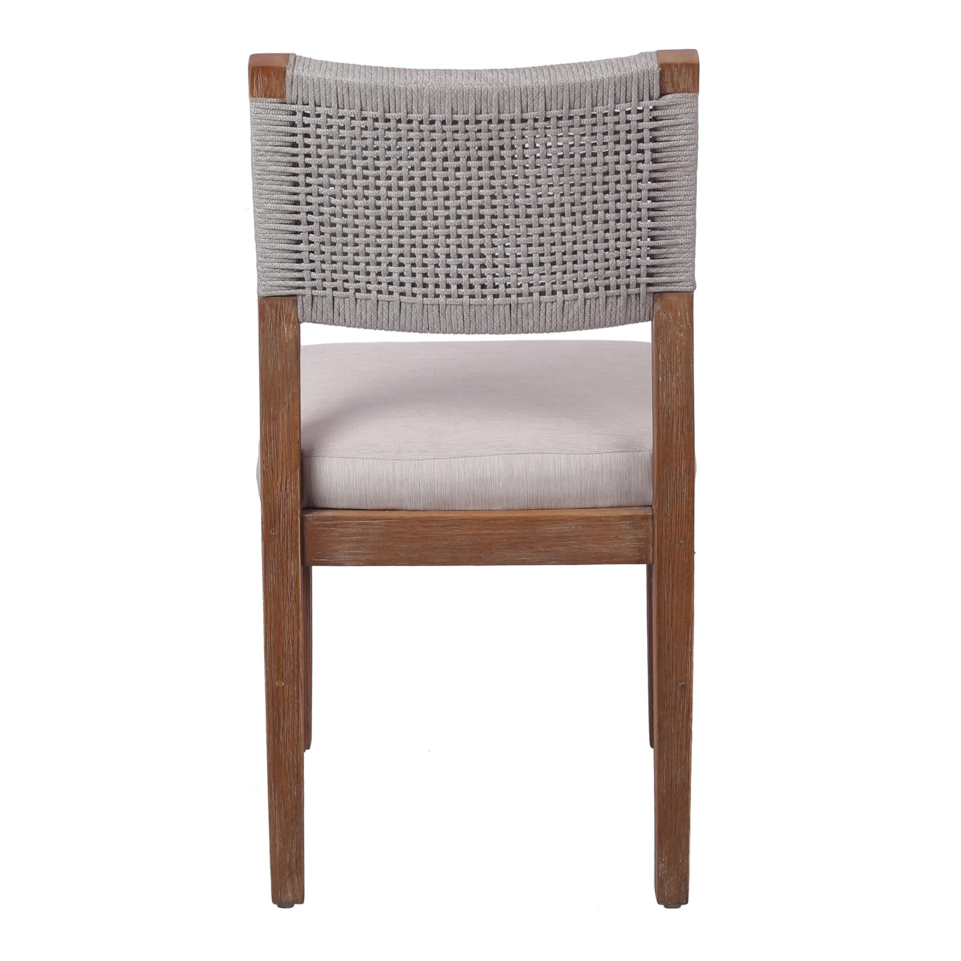 Irressistibly appealing with chic rope detail, this dining chair features charming interwoven rope pattern back in Gray tone paired with solid Mahogany legs in Brown; creating a modern appeal that's timeless and elegant in the dining room