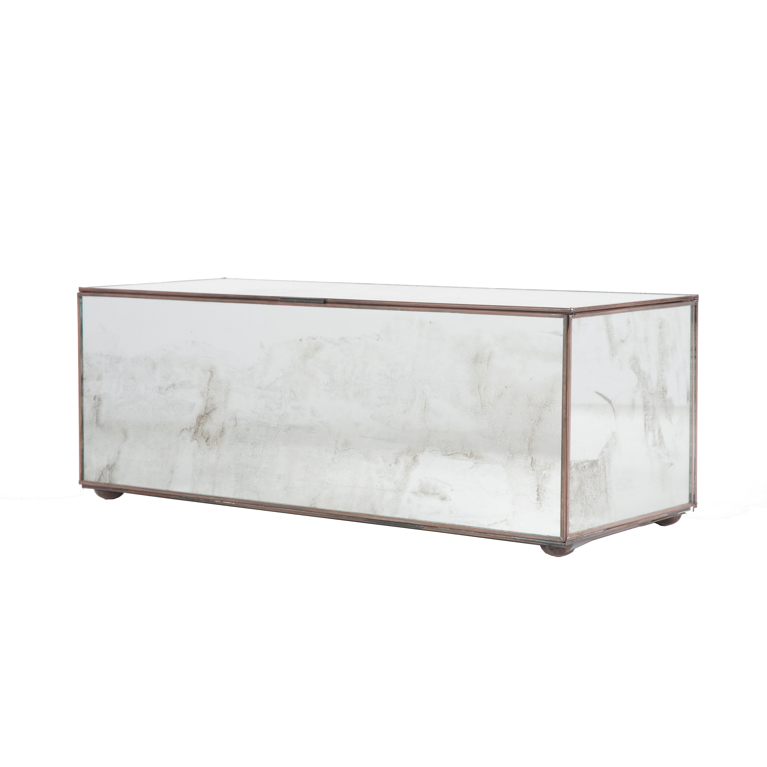 A staple for table top styling, the hinged, rectangular keepsake box features elegant antique mirror framed within an Old World, antique brass bezel. For a layered look, you can group this version with its two counterparts.
