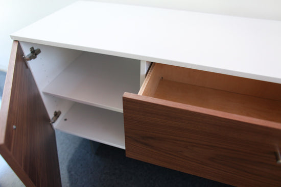 The Roh collection by Spot On Square is every modernists dream. The generously sized, 2-Door, 2-Drawer credenza will accommodate storage for even the biggest needs. Inside each door is a shelf that can be adjusted up or down within the space. This premium collection by Spot On Square raises the bar with innovation of design and material for the nursery. SUSTAINABLY MADE IN EUROPE!