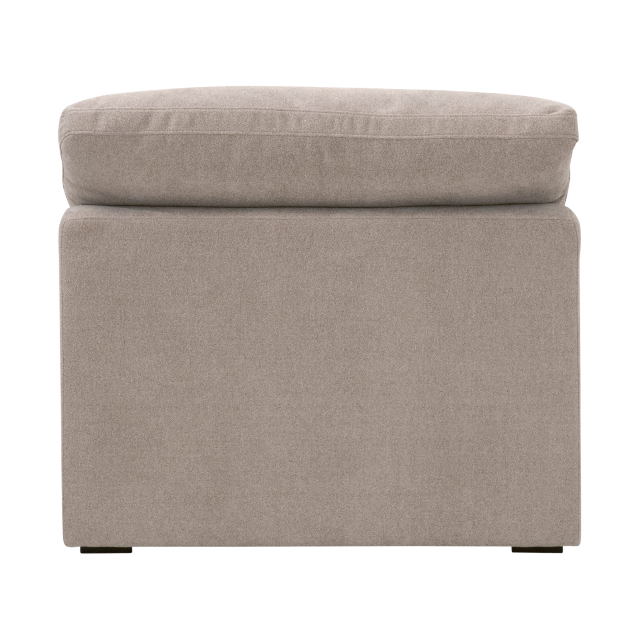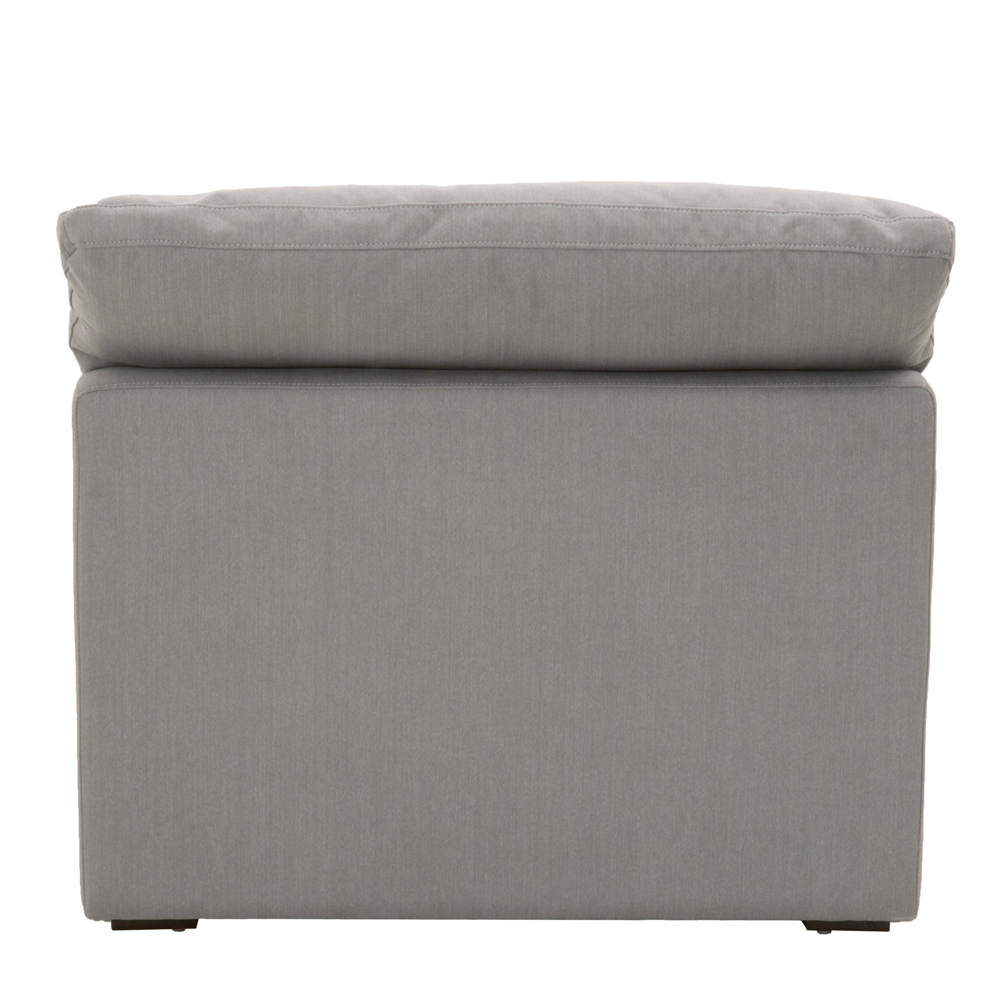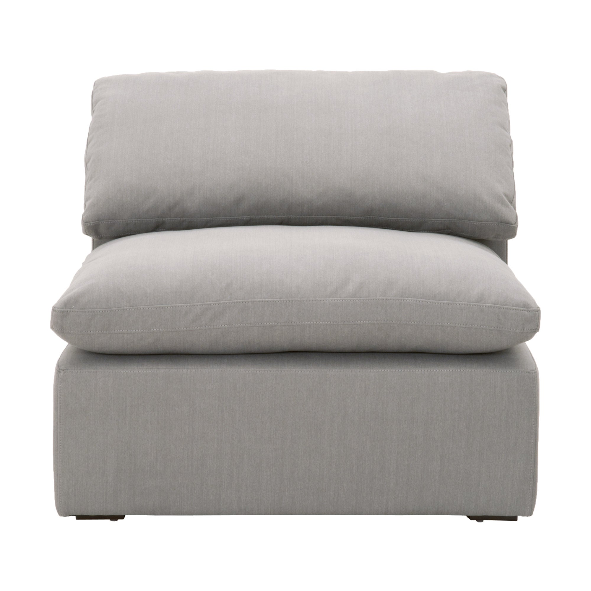 Add transitional style to your living room, family room, or den with the Sky Modular Armless Chair by Essentials For Living. Made with Livesmart Peyton-Pearl fabric, the white upholstery is easy to clean with its high performance and quality design. With the seat cushion made of half down and half polyester, this chair is extremely comfortable to curl up and read a book or watch television on. It features reversible seat and back cushions, as well as ties to prevent the cushions from moving. Constructed with 3.8" coil sinuous springs and stain resistant fabric, this chair is meant for durability and dependability. The exposed birch wood feet have an espresso finish. It measures 39.5" wide, 40" deep, and 36" high, with a seat height of 21.5". Pairs nicely with other Sky Modular Sofa pieces or works on its own as additional seating.