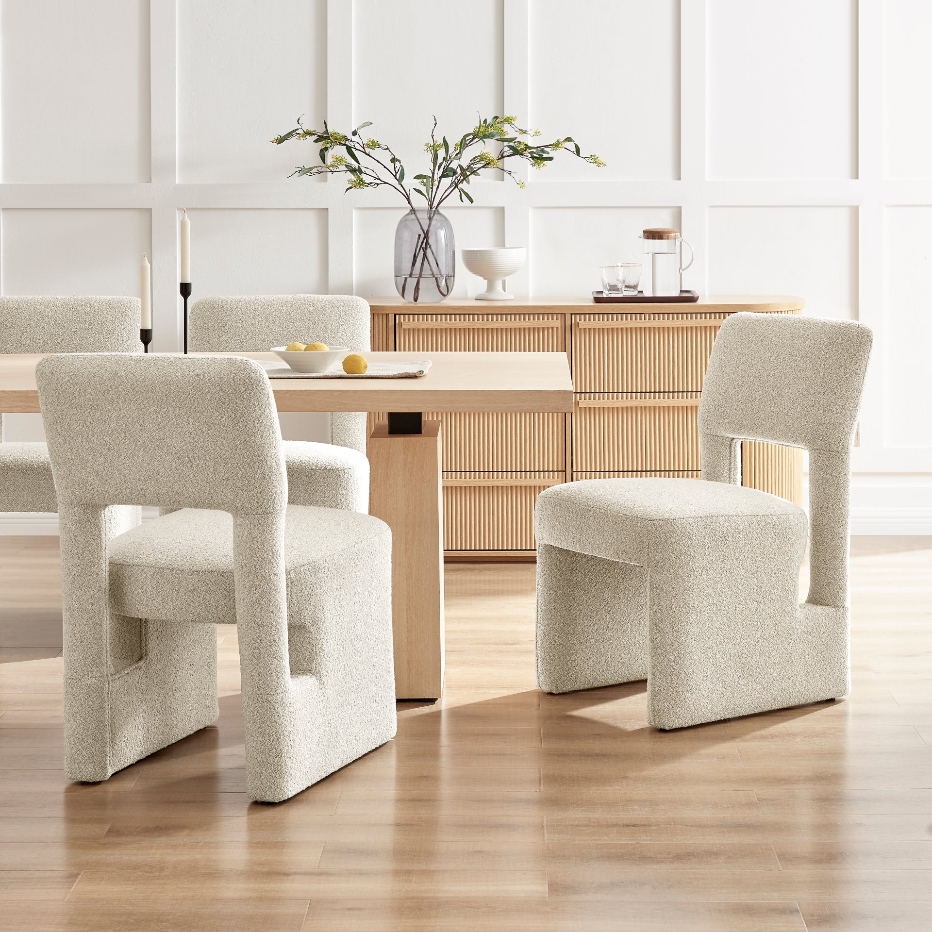 A True Modernist Chair! The Willa series is sleek and statement-making, blending bold geometric design with soft Boucle texture. Its distinctive style bridges the gap between classic form and pure modernism while offering exceptional comfort. Crafted with quality engineered wood and fully wrapped in fabric, it's stylish and durable.